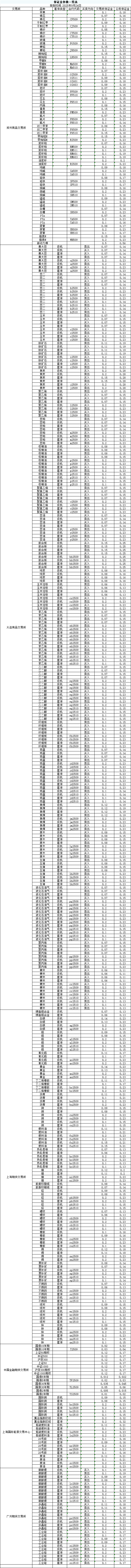 2025年9月24日保证金参数一览表